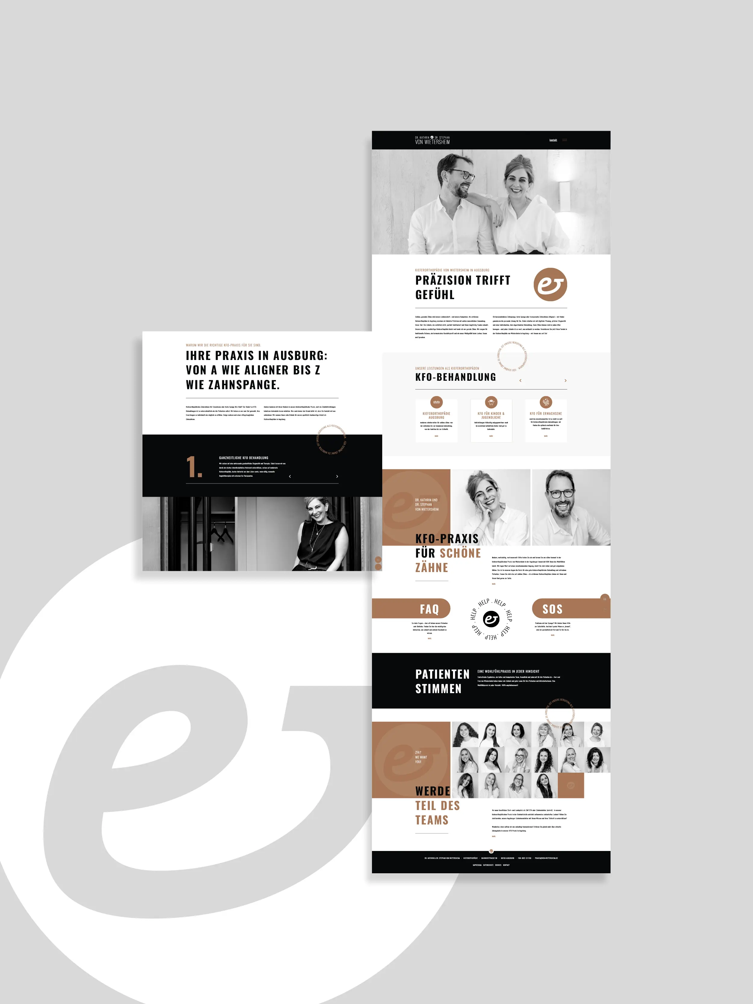 Sobald alles festgelegt ist, setzen wir Ihr Konzept professionell um – vom Logo über Geschäftspapiere bis hin zur Website. Während des gesamten Prozesses sind wir an Ihrer Seite, um sicherzustellen, dass das Endergebnis nicht nur ästhetisch beeindruckend ist, sondern auch wirkungsvoll zur Stärkung Ihrer Praxis beiträgt.